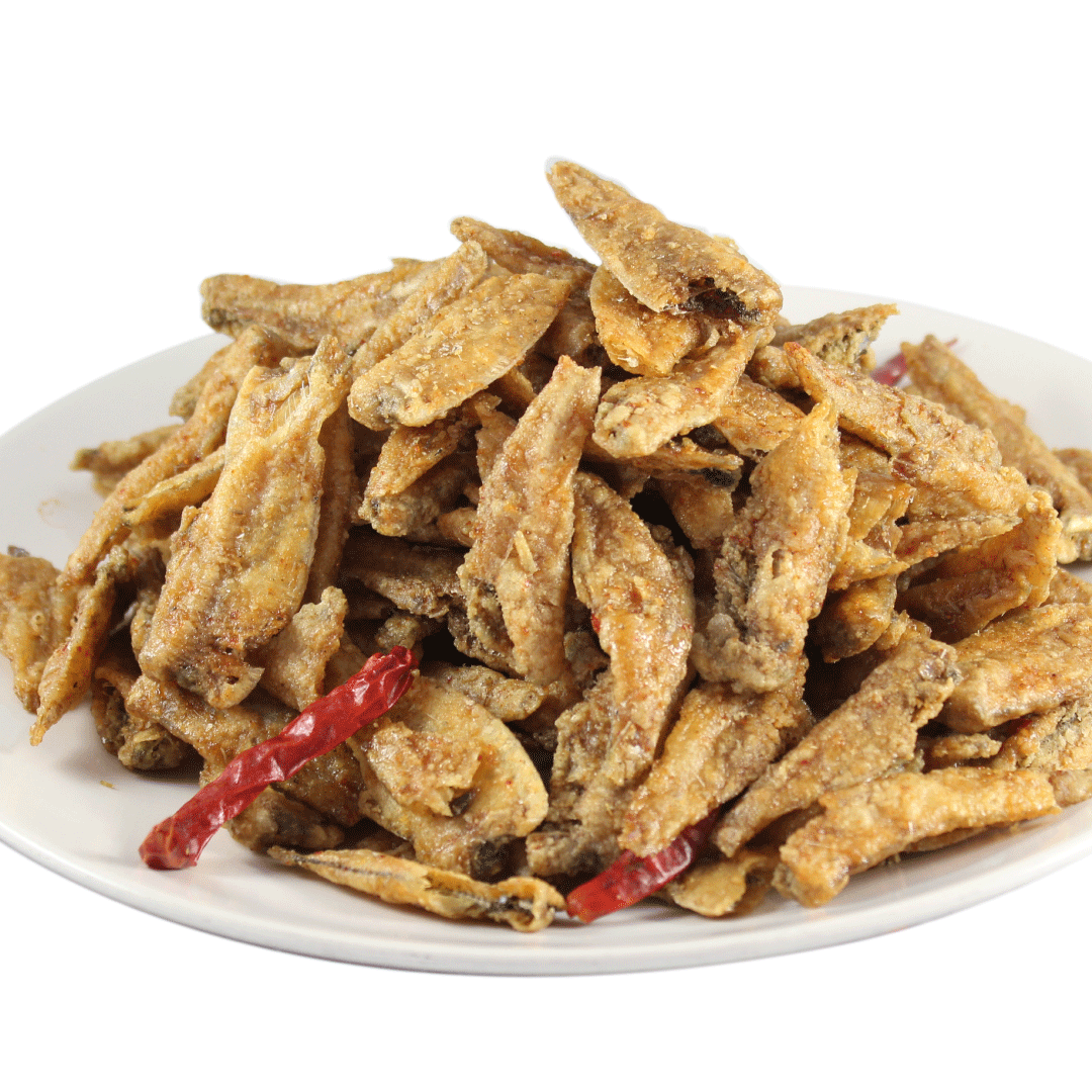 ทำจากปลาเกล็ดขาว นำมาทอดจนกรอบคลุกเคล้ากับเครื่องปรุงให้ได้รสชาตพอดี มีแคลเซี่ยมสูง เหมาะสำหรับทานเล่น และนำไปปรุงเป็นเมนูอื่นๆ